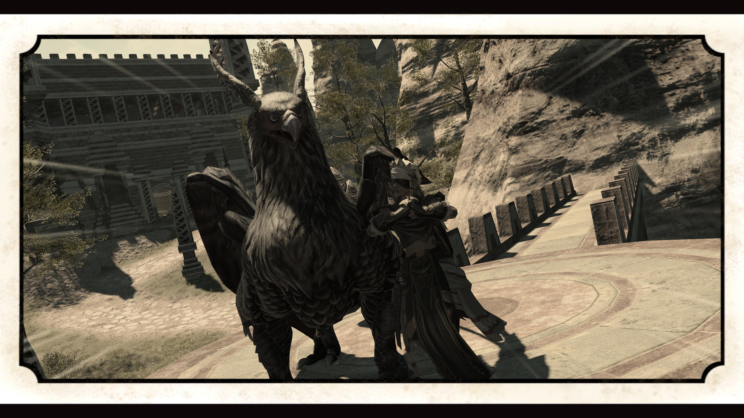 An old Ala Mhigan garrison dating back to the Autumn war. Situated in the mountains that split Gyr Abania from the Shroud, this place has traded hands several times. From being built by the Ala Mhigan military at the start of the campaign, to being captured by the forces of Gridania and recaptured by Ala Mhigo, it has stood the test of time.Now it stands as a temple to Rhalgr and a Monastery for those who wish to come learn not only the way of the Fist, but the rich and storied history and culture of Ala Mhigo.Beware Shatterspleen, the wild Griffin that roosts there. He may bite you, if you don't bring him a food offering.